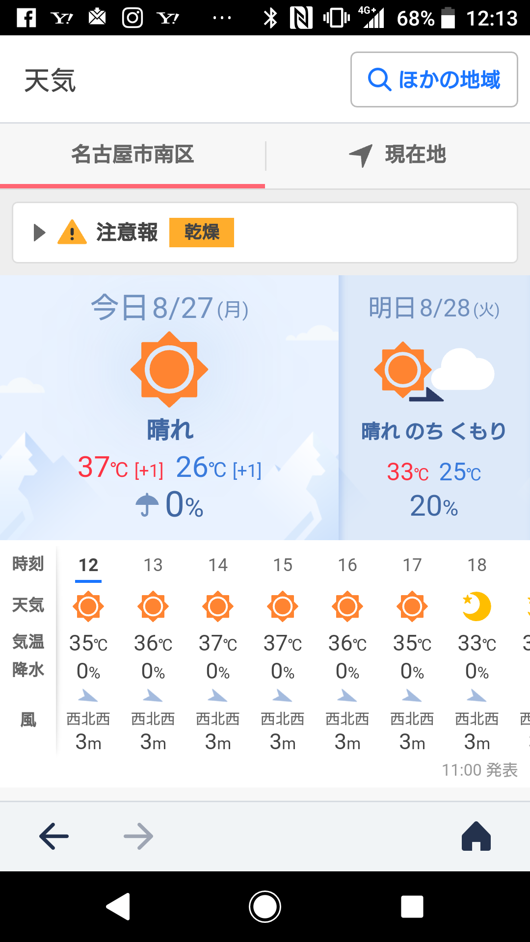 その日の気温相変わらず名古屋は暑く37度、晴天に恵まれています