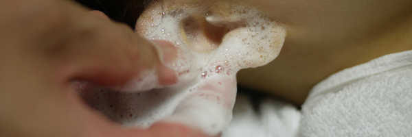 ツボを刺激しながらの美白効果のあるプロアテーゼ泡洗浄で古い角質や、