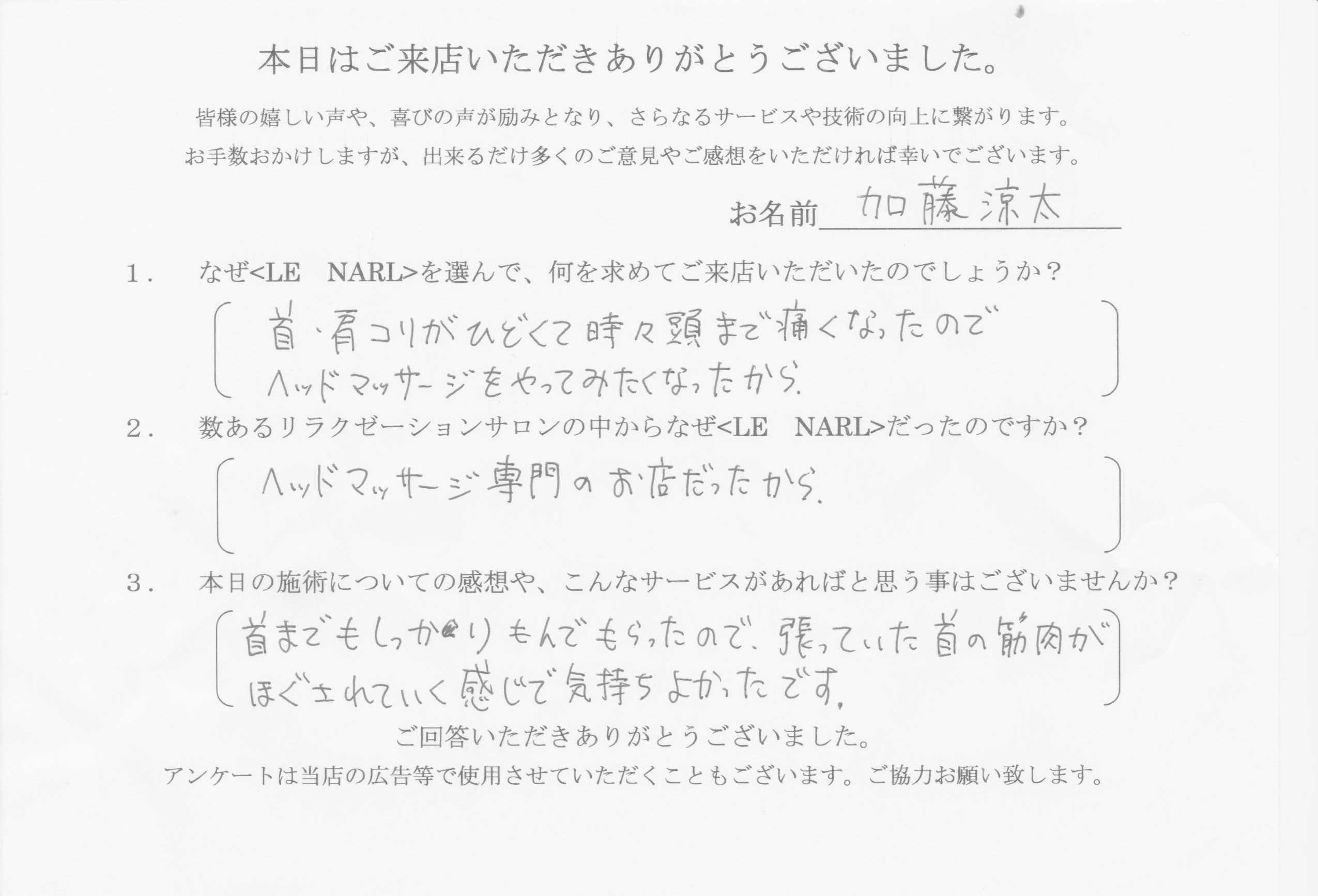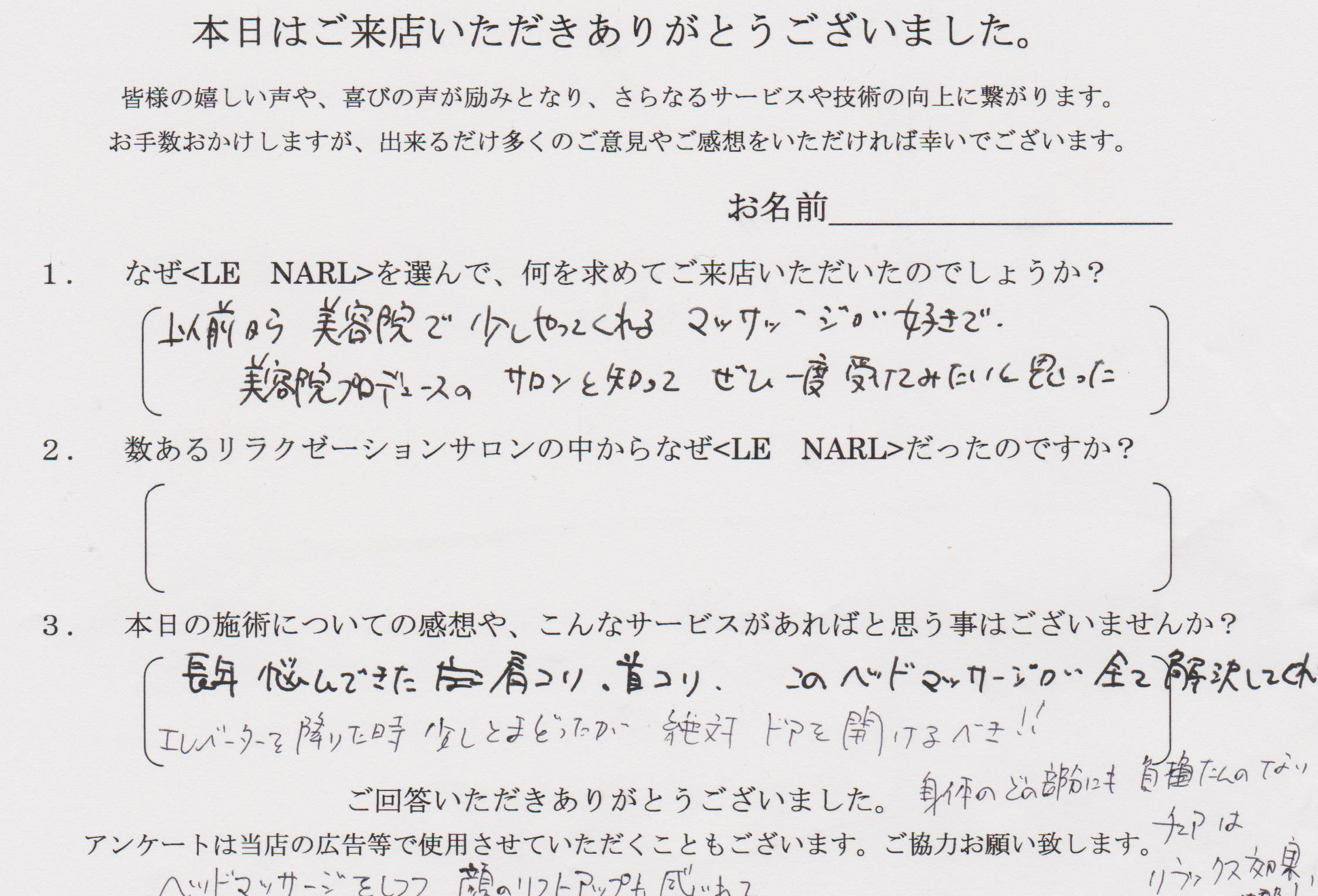 Q2. 数あるリラクゼーションサロンの中からなぜLE NARLだったのですか?